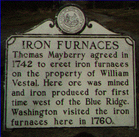 On May 10, 1742 a contract was entered into between Thomas Mayberry, William Vestal, John Traden, Richard Stevenson, and Daniel Burnett for the construction of a iron bloomery for the making of bar iron on the plantation of William Vestal. This contract was recorded in 1744.